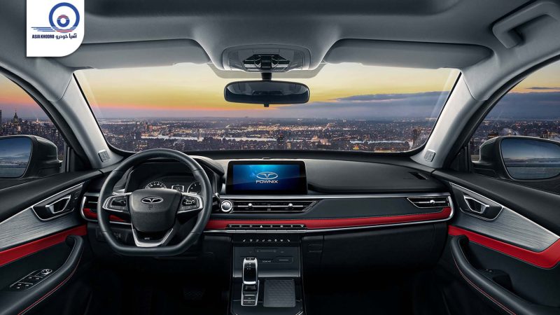 رنگ اصلی در داخل تیگو 7 پرو مشکی است و این رنگ را میتوانید در داشبورد تیگو ۷ پرو، رودریها و صندلیها ببینید. اما در کنار آن، برای افزایش حس اسپرت در کابین، عناصری از رنگ قرمز نیز دیده میشود که به جذابیت کابین کمک میکند. این رنگ قرمز را میتوان در داشبورد و بخشی از رودریها دید. بهعلاوه باید به صندلی های تیگو ۷ پرو اشاره کنیم چراکه دوخت قرمز در این بخش هم جذاب است. در کنار اینها، استفاده از طرح آلومینیوم در رودریها به تنوع در این بخش کمک میکند.